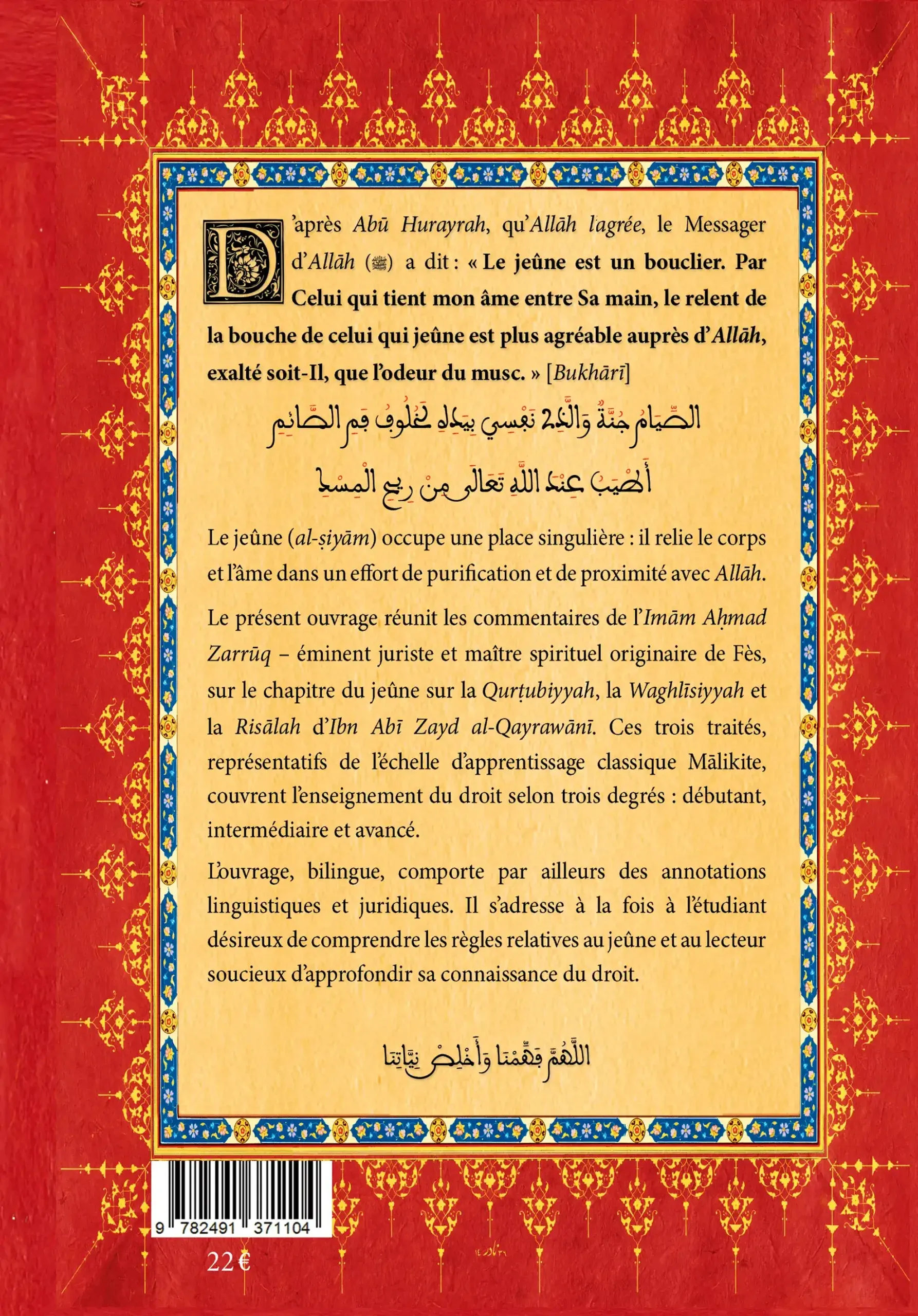 PRÉ-COMMANDE Recueil de commentaires de l’Imām Zarrūq sur le chapitre du jeûne, présenté en édition bilingue de 250 pages environ.
